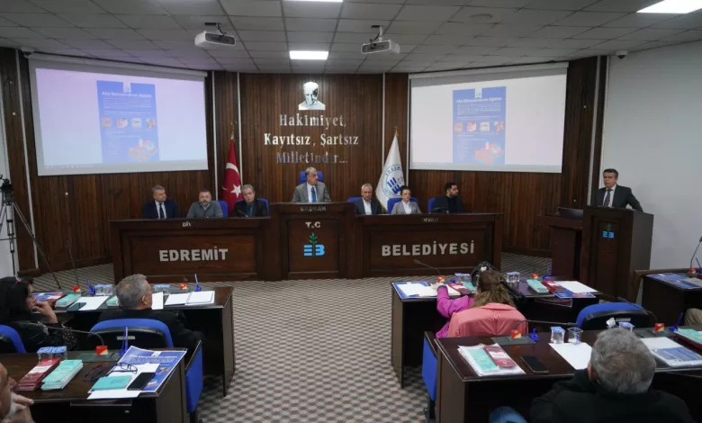 Edremit Belediyesi Şubat ayı muhtarlar toplantısı, belediye meclis salonunda geniş bir katılımla gerçekleştirildi. İlçedeki afet önlemleri ve altyapı çalışmalarının masaya yatırıldığı toplantıda, Zeytinli ve Güre arıtma tesislerine yönelik bilgilendirme yapıldı. Edremit Belediye Başkan Yardımcıları Cavit Cebeci, Coşkun Taşkın ve Metin Tunçer’in ev sahipliğinde düzenlenen toplantıya; BASKİ Genel Müdürü Erdoğan Öztürk ve Genel Müdür Yardımcısı Nuri Çaynak da katılarak muhtarları bilgilendirdi.